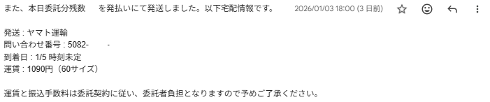 これに伴うヤマト運輸からの追加徴収がなかったのが幸いです。