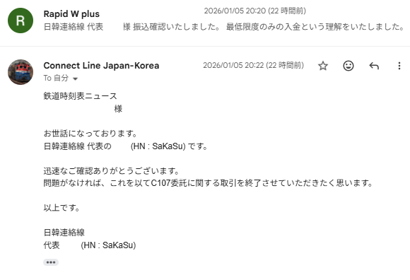 当会鉄道時刻表ニュースは過去5回コミックマーケットにサークル参加しています。が2025年の大みそかは諸般の事情により参加できなかったためそもそも2025年12月31日開催のコミックマーケット107には申し込んでいませんでした。