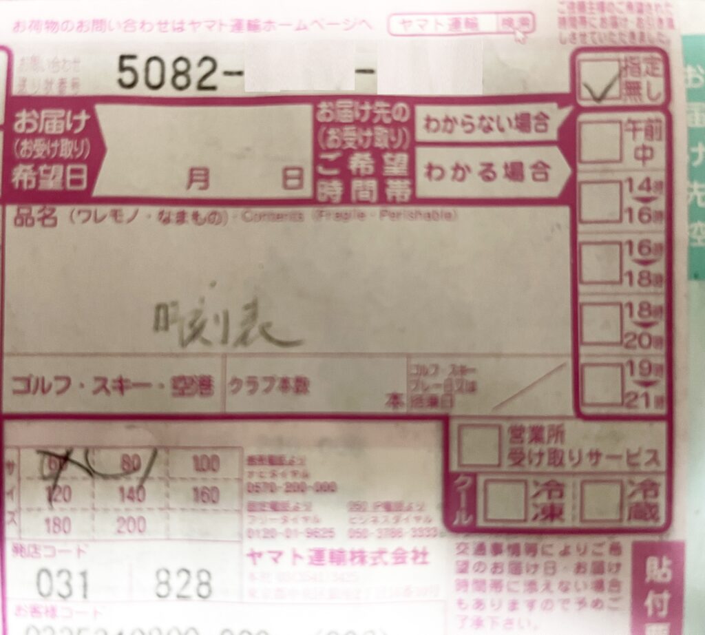 当日に残部報告をお願いしていたので(まあしてくれと言わなかったらしていないだろうな、後述するように彼はだらしないので)、約3.5kgとなることからヤマト運輸であれば80サイズだなとは考えていました。