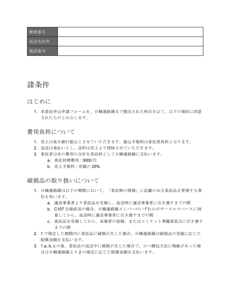 まあ委託手数料が売上の25%というのは極めて妥当なのですが(私もタダでやろうとは思っていないし、むしろこういうところで稼がせた方がいい)、サークル参加費が1スペース8,000円で1種類しか委託しないのに+3,000円とはなんぞやと。高くないかと、とはいえ妥当なラインは1,500円~2,000円程度と見たので1,000円節約して下手なことされたらかえって損害リスクがかかるので、あえてそのままにしました。結果的に目標売上や完売を想定した際に委託手数料30%~35%とられる計算と割高になりましたが、もし対応が良ければ次回以降も委託をお願いしようと考えていたくらいですし。そのほうがカネをあげればきちんとする人か、カネをあげてもできない無能かがわかるので。